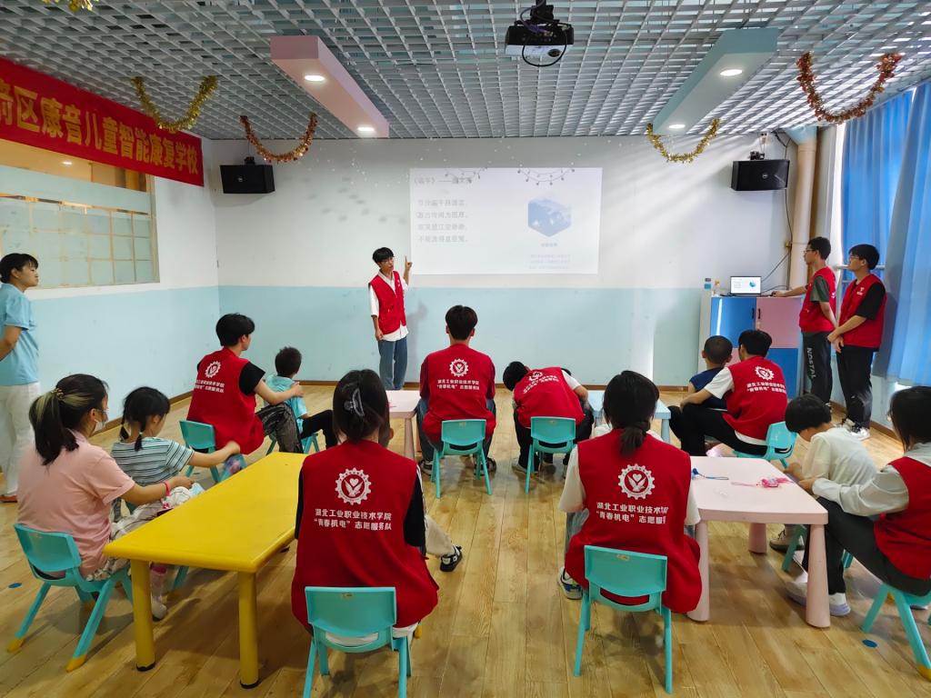 在端午节来临之际,为弘扬中华传统文化,传递社会关怀,5月23日,青春机电志愿服务队走进茅箭区康音特殊儿童康复学校,开展“情暖端午·与爱同行”主题志愿服务活动,为孤独症儿童送上节日祝福,带去温暖陪伴。