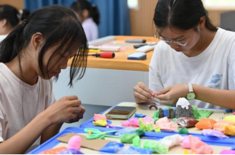 图为实践团成员耐心指导儿童进行折纸实践