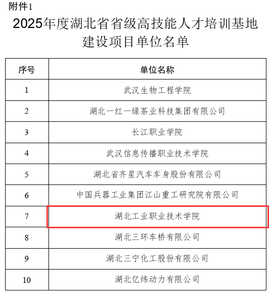 此次全省共评选出了高技能人才培训基地10家单位、技能大师工作室20家单位。pg游戏两个项目同时入选,既是对学校过往办学实力与技能人才培养成果的肯定,更是开启高技能人才培养新篇章的全新起点。未来,学校将以省级高技能人才培训基地建设为抓手,聚焦 “培养高技能人才、服务地方产业发展” ,进一步整合优质教学资源,升级实训设施设备,创新技能培训课程体系,打造高标准的技能人才培育平台,充分发挥基地的示范辐射作用,输送更多 “懂技术、善操作、能创新” 的高素质高技能人才,为区域产业发展贡献 “湖工职力量”!