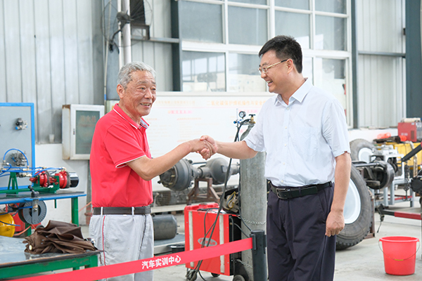 6月29日,校长边疆来到汽车工程学院商用车实训中心,看望慰问全国劳动模范、楚天技能名师、pg游戏特聘教授王涛老师和学校“优秀共产党员”“车城技能状元”马伟。