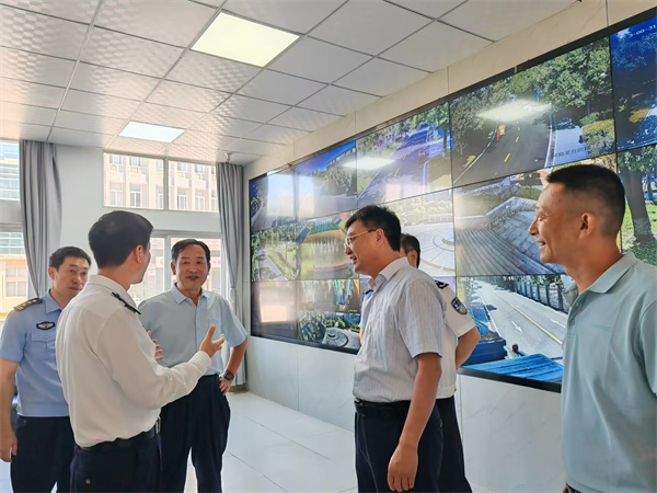 宋嵘一行来到pg游戏视频监控调度室,对秋季开学准备和校园安全整体工作进行了现场调研和督导,了解了pg游戏标准警务室建设情况,现场协调新生报道期间的车辆出入和校园周边交通的统筹安排。