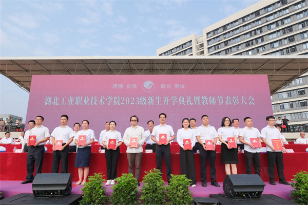 新闻网讯(文/记者 陶亿 图/记者 熊超 曾刚 学生记者 刘轶凡)爽爽秋风送炎暑,处处焕新迎开学。在第39个教师节来临之际,9月9日上午,湖北工业职业技术学院2023年秋季新生开学典礼暨教师节表彰大会在北区运动场举行。校领导魏文芳、边疆、毛义忠、郑强、胡昌龙、陈穗川、李辉和17000余名师生通过线下线上方式参加了开学典礼暨表彰大会。典礼由校长边疆主持。