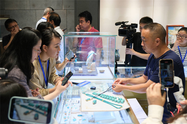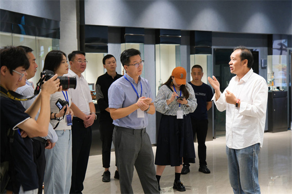 采访团抵达学校后,参观了艺术设计学院一楼作品展和绿松石产业学院绿松石产品展厅,并前往艺术设计学院二楼绿松石产业学院(玉雕大师张喜工作室)参观绿松石制作加工过程。校领导、艺术设计学院及相关校企合作企业负责人向来访嘉宾和记者介绍了十堰绿松石的产业背景,以及pg游戏艺术设计相关专业产教融合、校企合作的职业教育办学模式及实践成果。