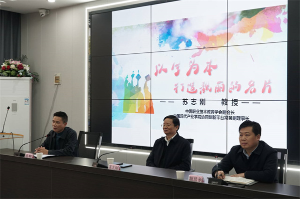 “‘知行合一’、‘以生为本’、‘聚焦目标’,这是当前我们围绕学生开展行动的三个关键内容。”现场,苏志刚从王阳明“知行合一”的哲学思想讲起,指出“知行合一”是行动哲学,体现了实践主义的思想,人民教育家陶行知强调教学做合一,手脑并用,阐释了“行动——知识(理论)——再行动”的教育逻辑,这些都是职业院校教师开展学生工作、增强学生文化自信的思想精华。他围绕“大学之道”,提出教师要以学生为本,积极探索学习之道、为人之道、管理之道,始终寻找职业教育与激发学习动力有机结合的方法,引领学生在“知行合一”中自我认知与自我成长。