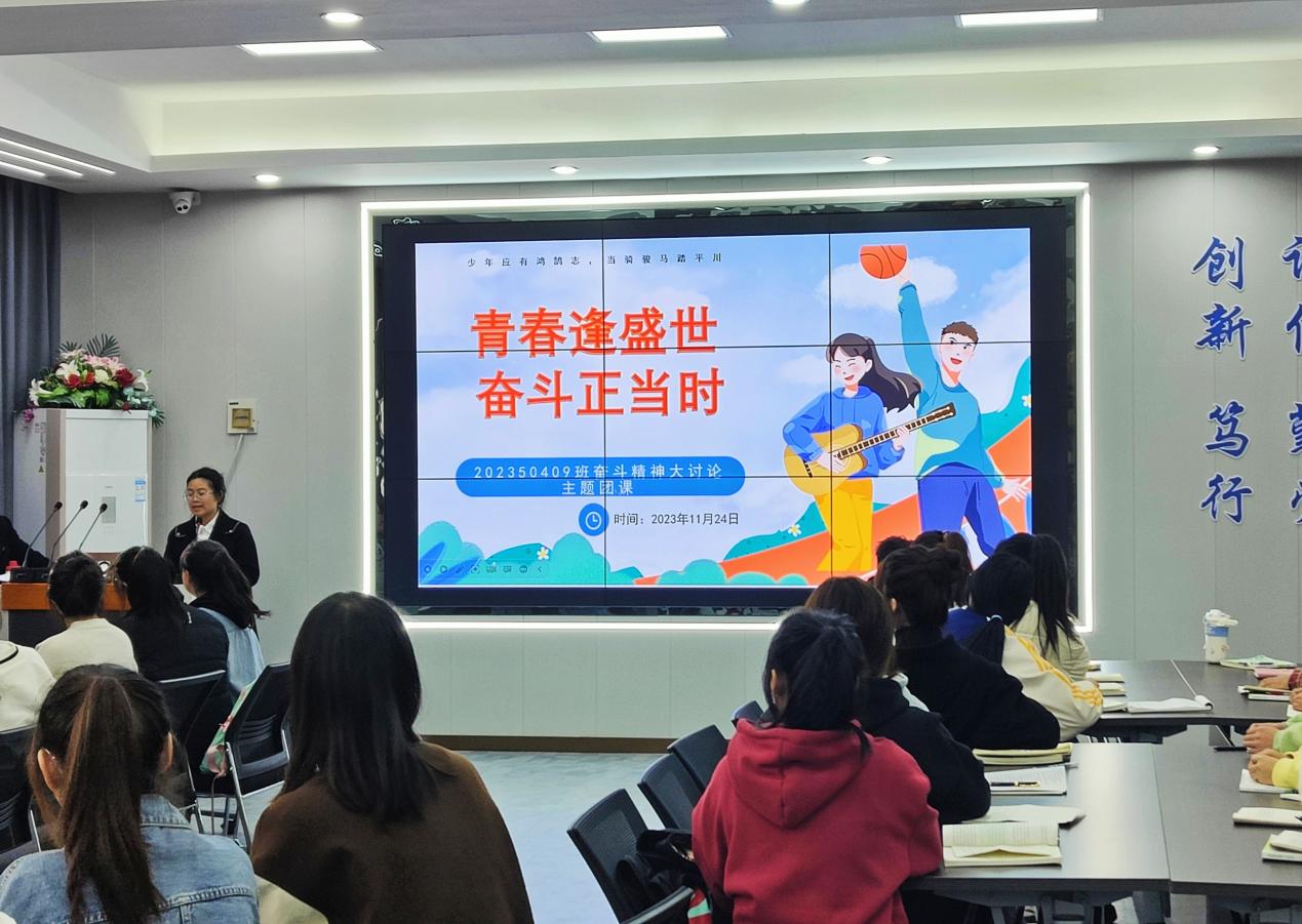 新闻网讯(通讯员 刘姗姗)11月24日下午,旅游商贸学院202350409团支部在3319教室举行“青春逢盛世,奋斗正当时”主题团日观摩交流活动,校党委副书记肖海华,校团委、旅游商贸学院、建筑工程学院等部门负责人以及各二级学院辅导员代表参加观摩交流。