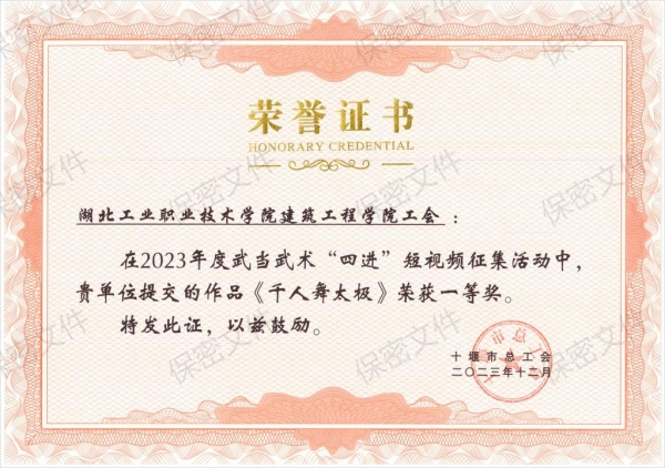 新闻网讯(通讯员 王厚兵)12月13日,十堰市总工会召开十堰市职工思想政治工作成果展示会,在成果展示活动中,pg游戏建筑工程学院推送的短视频“樱花校园千人舞太极”和“传承武当文化强体魄”分别荣获一等奖和三等奖。