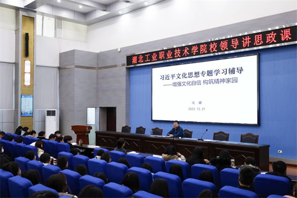 新闻网讯(文/田运科 图/张鑫)为深入学习贯彻习近平总书记在文化传承发展座谈会上的重要讲话精神,推进《习近平新时代中国特色社会主义思想概论》这门思政教育主课讲深、讲透、讲活,教育引领广大青年学生勇做文化强国之路上的奋进者、开拓者、领跑者,12月21日上午,校党委副书记、校长边疆在学术报告厅以《增强文化自信,构筑精神家园》为题,为师生讲授了一堂深刻、生动的习近平文化思想专题思政课。