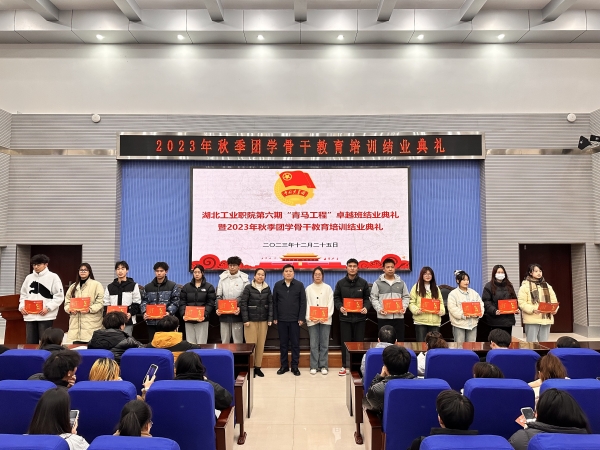 仪式上,校团委有关同志宣读了《关于湖北工业职业技术学院“青马工程”第六期大学生卓越培训班结业的决定》《关于2023年秋季团学骨干教育培训结业的决定》,与会领导为两期培训学员颁发结业证书及优秀学员证书。旅游商贸学院2022级学前教育专业鲍航同学代表本次培训优秀学员作结业发言,表示将明确个人的努力方向和奋斗目标,认真学习、积极实践、以身作则,不断升华自己的人格,争做青年先锋模范,为实现中华民族的伟大复兴贡献青春力量。