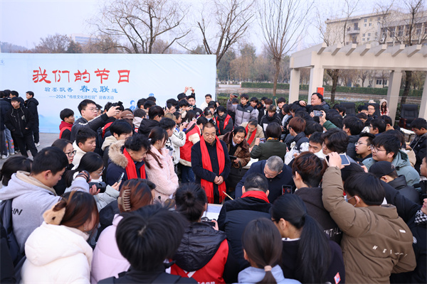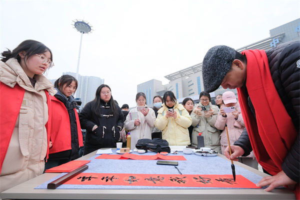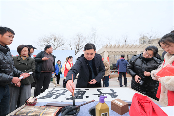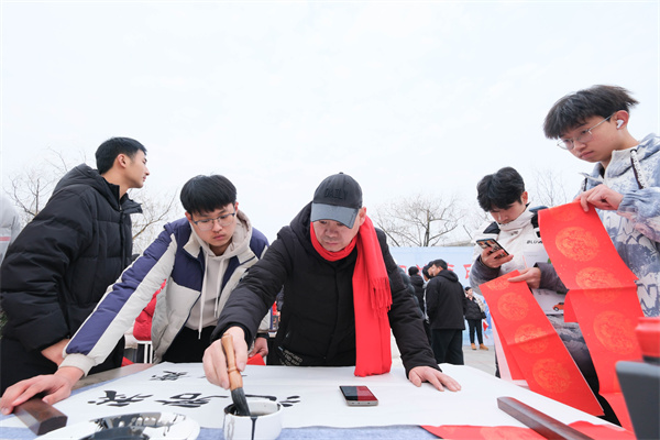 新闻网讯(文/图 记者 熊超 曾刚)12月28日下午,湖北工业职业技术学院邀请十堰市著名书画家操建华、李发山、黄家喜、叶继成、赵虹、姚强、李永涛、刘亚军、杨永志在学校慧智广场现场挥毫泼墨,为师生展示书法、美术创作技法并义务创作,和pg游戏学生书画协会的同学亲切交流研讨,并一同为师生书写春联,送上新春的祝福。校党委副书记、校长边疆,校党委委员、副校长、党委宣传部长胡昌龙参加活动。