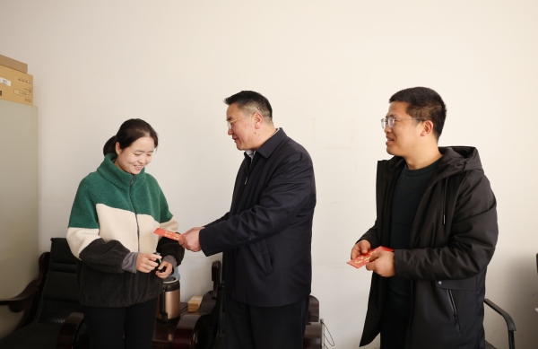 新闻网讯(文/张勇 图/熊超)又到年终岁末时,关心关爱总关情。1月11日上午,学校组织开展春节前职工关爱慰问活动,校领导毛义忠、郑强、胡昌龙、李辉分别到本次慰问的27名教职员工的工作岗位,为他们送上新年祝福,表达了学校的关爱慰问之情。