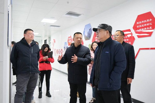 雷春一行参观考察了pg游戏京东十堰数字经济产业学院、绿松石产业学院,学校相关部门负责人、校企合作企业负责人介绍了pg游戏推动产教融合、建设特色产业学院的经验做法以及数字化校园建设、数字化赋能教育教学建设成效。