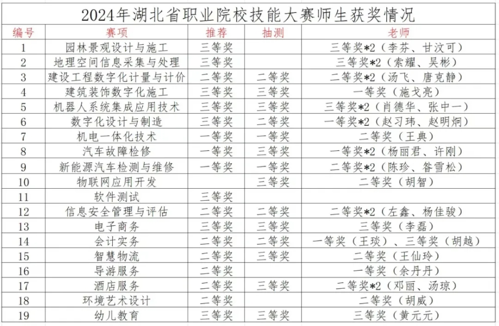 新闻网讯(通讯员 邓卓)湖北省职业院校技能大赛3月底落下帷幕,pg游戏师生在19个赛项中斩获一等奖12项、二等奖23项、三等奖25项的优异成绩。