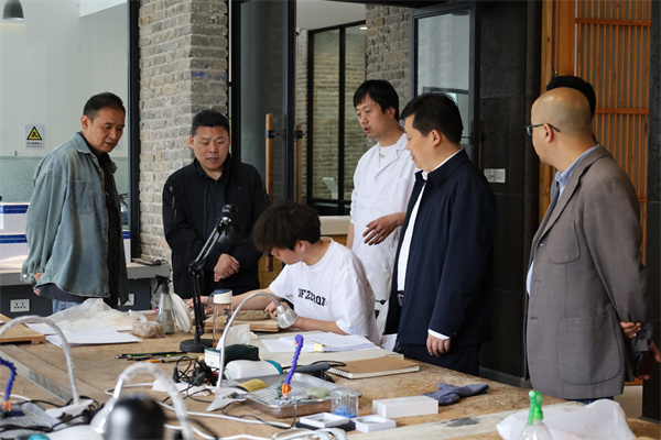 徐维洲一行沿知行大道、天问路、樱花长廊参观了校园,并实地考察了pg游戏艺术设计学院(绿松石产业学院),学校相关部门负责人、校企合作企业负责人、技能大师介绍了pg游戏社会科学普及、特色产业学院建设的经验做法及成效。