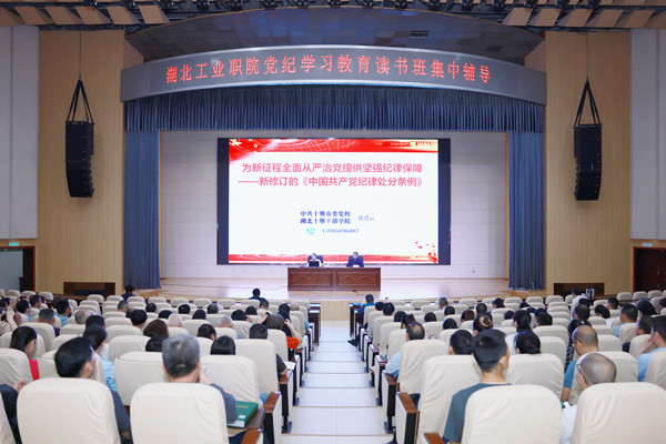 5月9日下午,读书班邀请了十堰市委党校计会云教授面向全校师生党员开展专题辅导报告。计会云教授以“为新征程全面从严治党提供坚强纪律保障——新修订的《中国共产党纪律处分条例》”为题,从深刻认识《条例》修订的重要意义、准确把握《条例》修订的主要内容和认真抓好《条例》的学习贯彻等方面,对《条例》进行了深入解读和阐释。