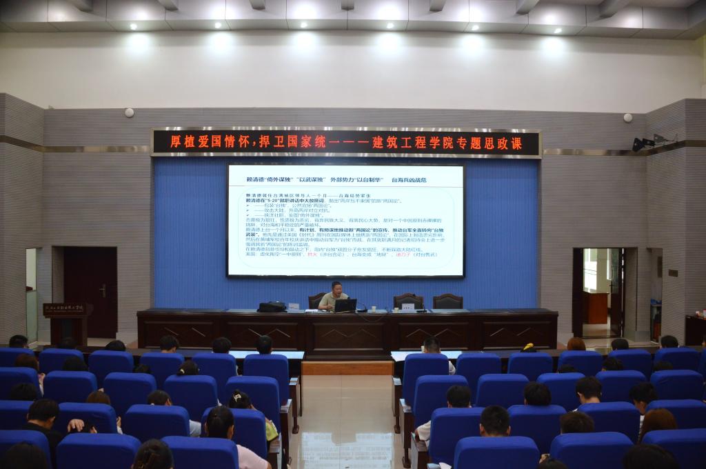 新闻网讯(通讯员 王厚兵 学生记者 董思远)为深入学习贯彻党的二十大精神,教育引导广大学子维护祖国统一,帮助学生深入理解新时代党解决台湾问题的整体方略,激励青年学生增强历史责任感和使命感,激发强国有我的青春激情,在强国建设、民族复兴伟业中勇当先锋队、突击队,建筑工程学院于6月26日在学术报告厅举办了《厚植爱国情怀,维护祖国统一》的专题党课。本次党课由校党委副书记肖海华主讲,建筑工程学院入党积极分子和大一学生参加了此次活动。