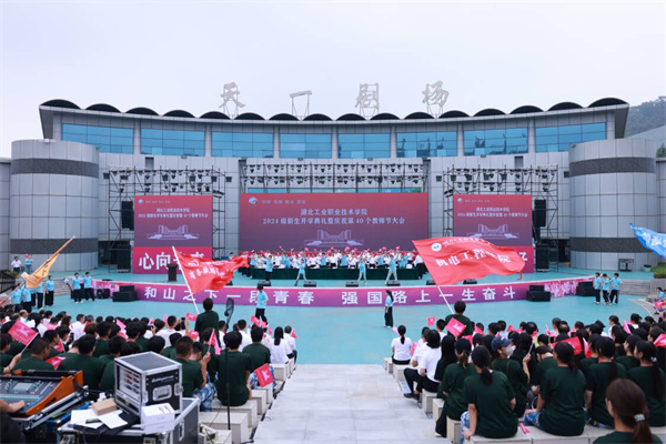 “展开双翅,去奔跑,像个孩子,写下你的名字,在风中化成诗……”在合唱的《奔赴》歌曲声中,湖北工业职院2024级新生开学典礼暨庆祝第四十个教师节大会圆满结束。