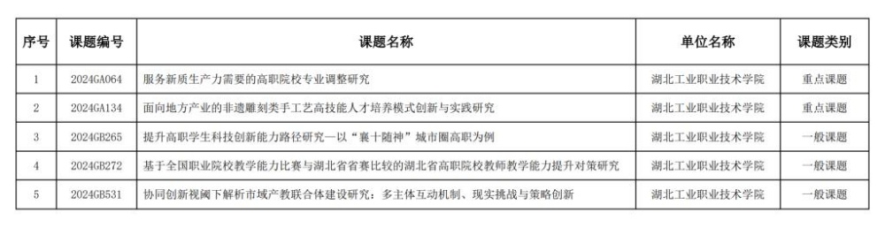 新闻网讯(通讯员 段林牧)近日,湖北省教育厅发布了“2024年度教育科学规划课题”立项结果,pg游戏5项课题成功获得立项批准。其中重点课题2项,一般课题3项。