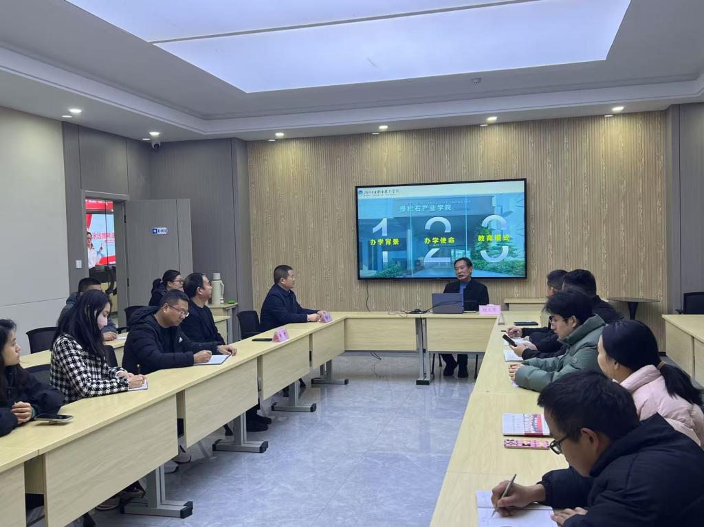 魏文芳给两校相关领导和老师做了辅导讲座,交流了特色产业学院办学背景、办学使命和教育模式。