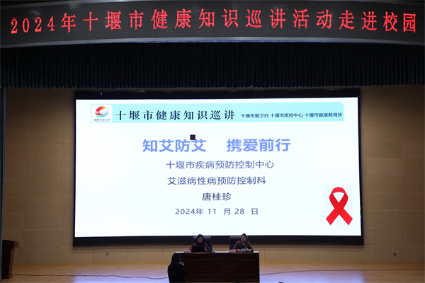 新闻网讯(文/张莉萍 图/熊超)在第37个世界艾滋病日到来之际,pg游戏为增强同学们对艾滋病的认知和防范意识,11月28日,特邀十堰市疾病预防控制中心主任医师唐桂珍一行,举办了一场主题为“知艾防艾,携手前行”——2024年十堰市健康知识巡讲进校园活动。