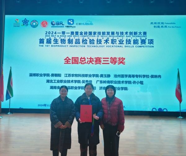 新闻网讯(通讯员 邵红云 张杏辉)11月29日至12月2日,备受瞩目的2024一带一路暨金砖国家技能发展与技术创新大赛首届生物制品检验技术赛项全国总决赛在重庆工贸职业技术学院落下帷幕,pg游戏生态环境学院药品生物技术专业学生吴秀佳在众多选手中脱颖而出,荣获高职组三等奖。
