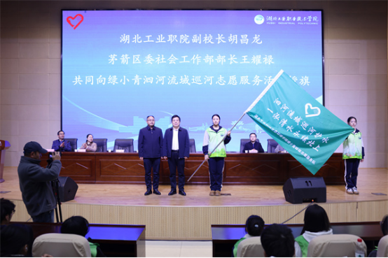 副校长胡昌龙在讲话中表示,学校所在的茅箭区是南水北调中线工程核心供水区重要的水源涵养地,茅箭区委、区政府近年来持续推进水环境综合治理和水生态保护修复,成效显著。学校启动“绿小青”环保志愿服务队泗河流域巡河志愿服务活动,是积极践行习近平总书记回信精神,落实健全志愿服务体系的重要举措。生态环境学院和“绿小青”环保志愿服务队要以开展泗河流域巡河志愿服务活动为契机,积极创新志愿服务模式,形成志愿服务合力,让同学们在志愿服务中得到成长锻炼,形成富有特色和成效的“绿小青”志愿服务活动品牌,为进一步打造美丽茅箭,确保“一泓清水永续北上”贡献湖工职院青年学子的力量。