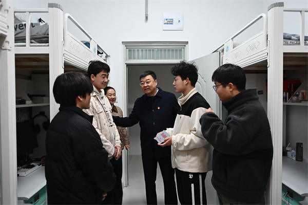 12月12日,校党委书记、校长边疆深入“一站式”学生社区,调研“十星级文明寝室”创建工作,走访慰问学生,并亲自为党员示范寝室授牌。边疆勉励荣获党员示范寝室的同学们珍惜荣誉,发挥模范带头作用,共同创建文明宿舍、文明校园。