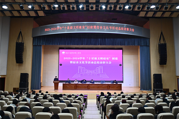会上,对2023-2024学年“十星级文明寝室”创建暨宿舍文化节活动先进集体和个人进行表彰;对2024-2025学年“十星级文明寝室”创建暨宿舍文化节活动进行安排部署;旅游商贸学院周凡淼同学代表校团委、学生会宣读了《寓馨寓净“宿”说美好——“十星级文明寝室”创建活动倡议书》。