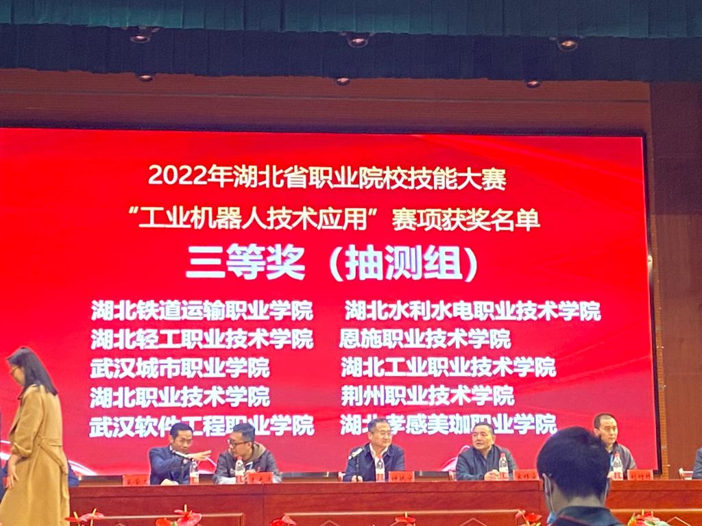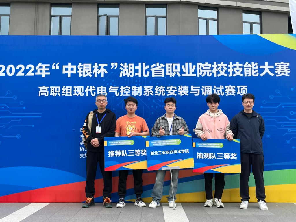 2022年“中银杯”湖北省职业院校技能大赛高职组比赛中,pg游戏电子模拟器两支参赛队分别荣获现代电气控制系统安装与调试赛项三等奖2项,工业机器人技术应用赛项三等奖1项.