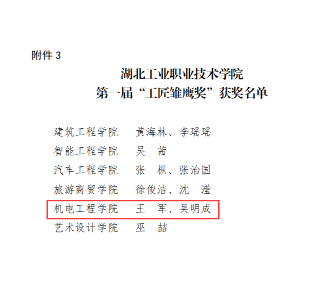 2023年9月,pg游戏电子模拟器202160602工业机器人技术专业王军、202160601工业机器人技术专业吴明成被评为湖北工业职业技术学院第一届“工匠雏鹰奖”